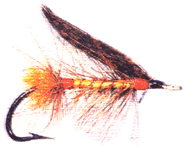 Wings - from the tail of a brown turkey Head - crimson wool Body - yellow silk End of body - crimson wool Tail - yellow or orange wool Round the tail - red cock's hackle Round the body - gold twist, and over it hackle mixed with the colour as above