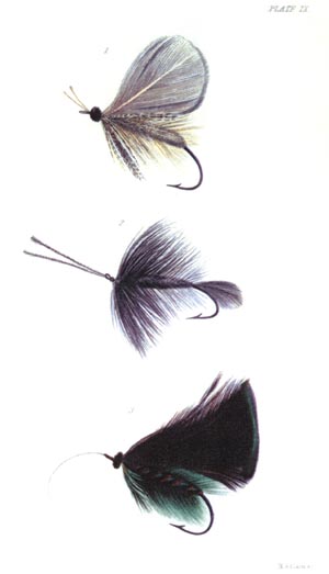 This book contains nine exquisitely hand-colored plates, three of which depict a total of eight salmon flies (the rest of the plates depict trout flies, minnow lures, etc.). I feel that these salmon fly paintings rival in quality and color those found in Jones's Guide and, in fact, depict a number of rather interesting patterns which use some quite unusual materials that I, personally, have never seen listed elsewhere. These include feathers from the King Bird of Paradise and the Trogon, neither of which can be obtained today (at least not legally!).