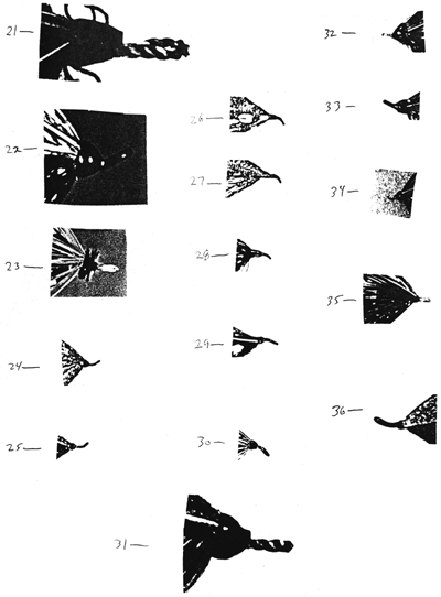 Here is a little quiz in which you try to match the salmon-fly head with the tier; some tiers are represented more than once (see illustrations on next two pages). This is a very tough quiz, with a difficulty level of ten on a scale of one to ten. I, of course, got a perfect score (on the nineteenth try).