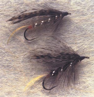 "The local pattern of salmon flies will doubtless come as somewhat of a shock to the visitor when first he arrives in Brittany. They are indeed gaunt and clumsy looking creatures, in effect, destitute of what we understand as "wings". Only experience can teach that they are here more successful than our customary full winged patterns."