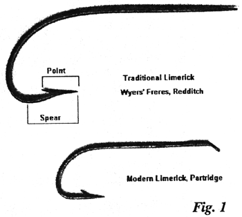 There is much reading to be had on hooks and different shapes of hooks in books, catalogs etc. At the end of this article the reader will find reference to some of the most interesting sources. Today as well as in the old days there is a wide variety of different designs available and as it will be possible to explain just a little bit about the subject here I will stick to one design only: the Limerick style of bend.